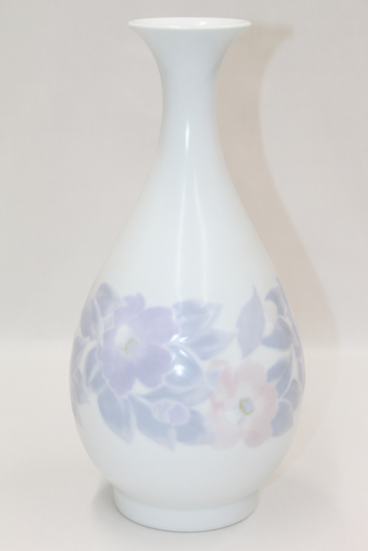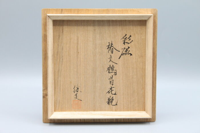 彩磁椿文鶴首花瓶